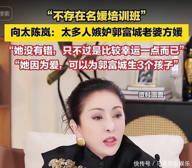 眼看方媛被骂得厉害,向太1月初发视频力挺,本想帮着澄清,结果反而把舆论推向高潮。- 首先,她全盘否认“名媛培训班”存在,反问“当今谁有资格教名媛?”,说方媛能嫁天王全是“运气好”“遇到真爱”。- 接着,她还打性别牌,犀利反问“为什么只骂‘捞女’,不骂‘捞男’?”,试图转移焦点。- 最关键的是,她为了证明两人感情好,提到方媛“8年抱3”,还脱口而出“第三胎本来想生个儿子,打破四大天王生不出儿子的魔咒”。